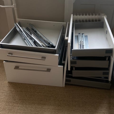 3 stk trådhylder, passer til gammelt IKEA FAKTUM køkkenskab 50x60 cm eller andre skabe med samme bredde.