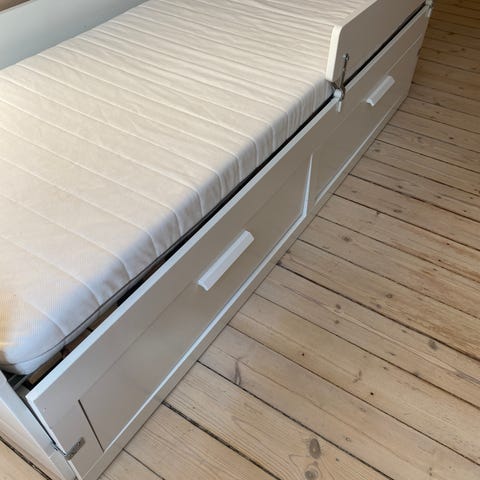 Enkeltmandssend med kanelbund gives væk. Afhentes hurtigst muligt. Madras medfølger ikke.