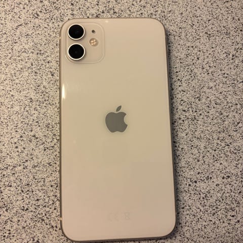 Apple iPhone 12 smartphone med 128 GB intern hukommelse. Modellen har dobbelt bagkamera, frontkamera i skærmen og Lightning-stik til opladning og data. Enheden leveres med original æske, opladerkabel og øretelefoner (aldrig brugt) som vist på billederne. Farven er hvid. Egnet til almindelig daglig brug, streaming, foto og apps med god lagerplads til billeder, video og filer.