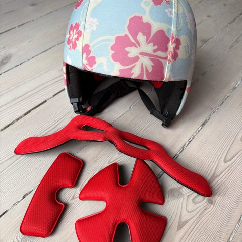 Ekstra polstrede puder medfølger - aldrig brugt. De er lidt tykkere end dem, der allerede sidder i hjelmen.
