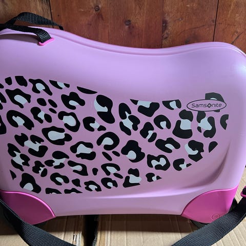 Samsonite Minnie Mouse trolley i stof og plast. Kufferten har motiv af Minnie Mouse på fronten og er overvejende rød med hvide prikker og sorte detaljer. Den er udført i blødt stofmateriale med udtrækkeligt teleskophåndtag og to hjul i bunden, så den kan trækkes. Der er bærehank på toppen samt lynlåslukning hele vejen rundt. Indvendigt er kufferten rød med prikmønster og har spændestropper til at holde indholdet på plads. Velegnet som mindre rejsekuffert eller weekendtaske til børn.