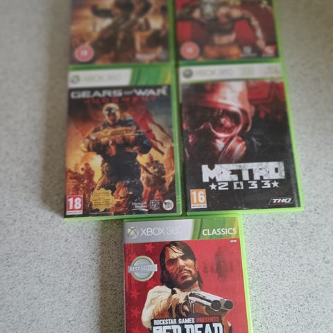 Xbox 360 spilpakke med flere titler. På billedet ses blandt andet Dead Space, Bioshock, The Elder Scrolls V: Skyrim, Gears of War og Battlefield 3. Spilpakke egnet til Xbox 360-konsol. Velegnet til spillere, der ønsker en samling action- og rollespilstitler til Xbox 360.