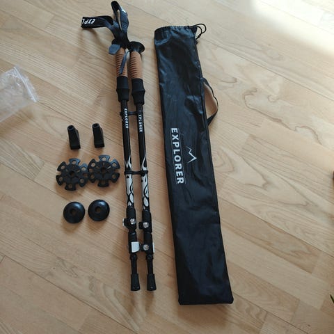 Vandrestok / Isøkse med håndledsrem i kunstlæder. Højde ca. 90 cm.