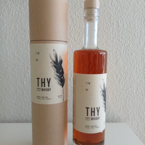 Thy PX whisky i glasflaske med original papgaveæske. E