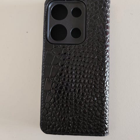 Xiaomi mobilcover i sort med struktur og integreret ringholder på bagsiden. Coveret har udskæringer til kamera og porte samt en ring, der kan bruges som støttefod til at placere telefonen skråt på en flade. Egnet til beskyttelse af bagside og kanter på en Xiaomi smartphone.
