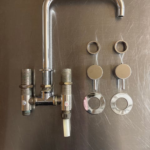VOLA Køkkenarmatur i krom med et-grebs betjening. Armaturet har høj, vinkelbøjet tud og er beregnet til montering i bordplade eller vask. Velegnet til brug i køkken eller bryggers, hvor der ønskes et enkelt et-grebs armatur i kromfinish.