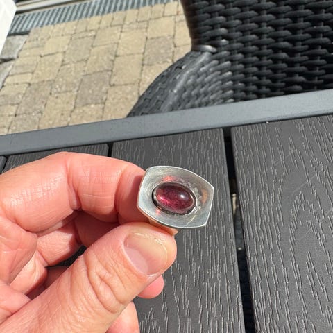 Flot lille vintage sølv ring med hjerte formet ravsten