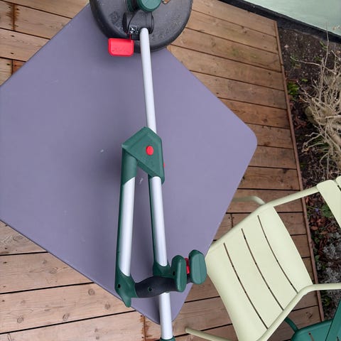Bosch græstrimmer til trimning af græs og kanter i haven. Elektrisk model med håndtag og skærhoved for præcis klipning langs bede, stier og kanter. Velegnet til almindelig havebrug, hvor der er behov for at komme til på steder, hvor plæneklipperen ikke kan nå.