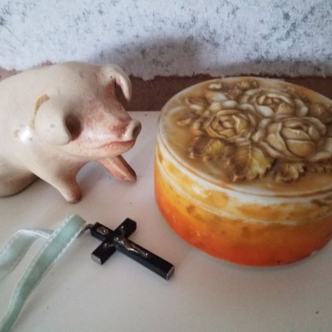 KÆMPE Skøn antik keramik RIS keramikkrukke med låg, Signeret