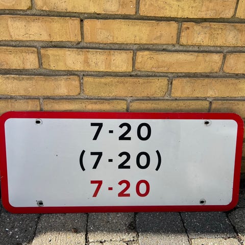 Stort P-skilt med brugspatina, men intakt.
