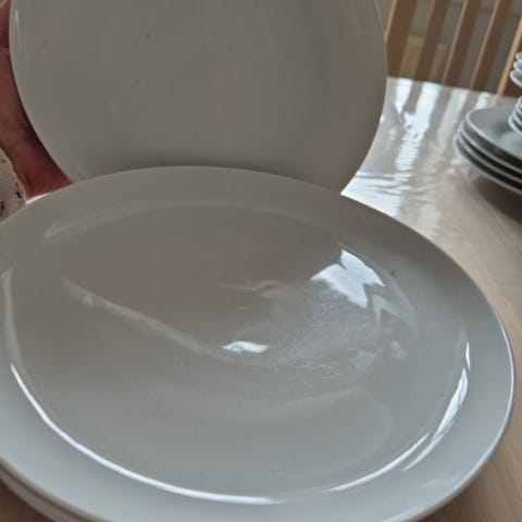 24 Kaffekopper m. Underkopper, 6 flade tallerkener 24 cm, 11 dybe 22 cm, 9 kagetallerkner 19 cm. Få med skår i.