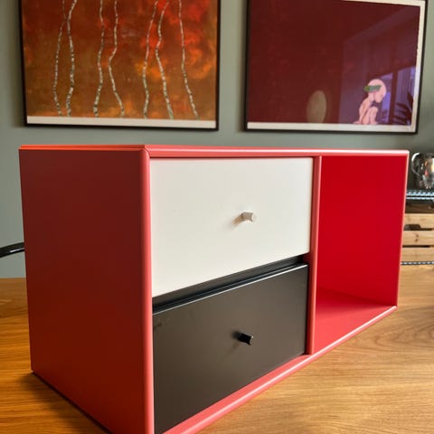 Modul med skuffer, helst 4 brede skuffer, farve helst antracitgrå (alternativt kan vi få den malet)