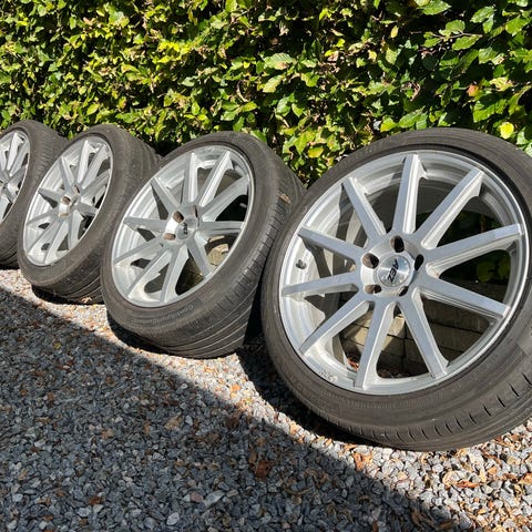 Komplette sommerhjul kørt 2.490 km. Dæk Hankook Ventus S1 evo3. Fordæk 235/50R20 og bagdæk 255/45R20. Hjul anvendt i perioden 29.4. - 16.10.25. Hjulene passer på alle VAG biler på MEB platform og endvidere på visse Skoda Oktovia, Superp, Karol, VW Passat, Audi A4 og Mercedes C-klasse.