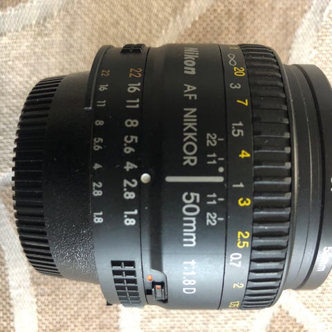 Fast prime-objektiv med 50mm brændvidde og maksimal blænde på f/1.8, egnet til Nikon kameraer med kompatibelt fatningssystem.