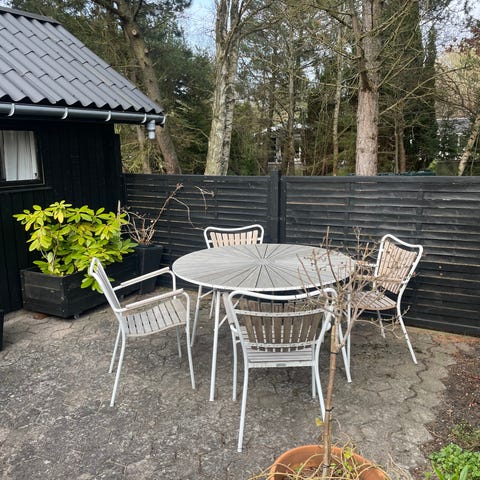Rundt havebord træ med hvide ben