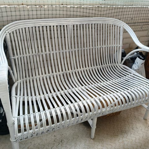 Retro kurvesofa i rattan – 2 pers – inkl. hynder – sommerhus