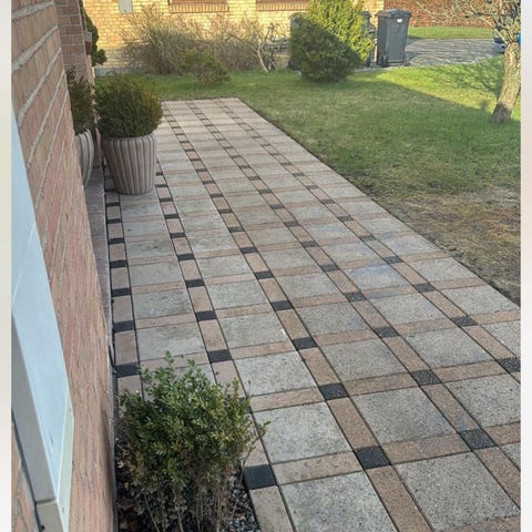 Sandstensfliser udskåret af sandsten fra vor Frelser kirke og kongeslottet i Stokholm, derfor brugt, men fliserne er helt nyopskårne og har aldrig været lagt. Forskellige størrelser, nuancer og formater. Ialt ca 10 m2. Alle er 6 cm tykke, egnet til terrasser, havestier kantning af bede o. l.
