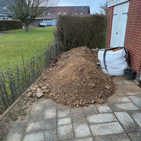 Havegrus med små sten i lys naturfarve. Kornstørrelsen fremstår som fine til mellemstore sten, velegnet til indkørsler, stier eller prydarealer i haven. Gruset ligger jævnt fordelt og kan bruges som overfladelag omkring bede, buske og dekorative sten. Velegnet til områder, hvor der ønskes et fast og drænende underlag med et ensartet udtryk. Gives væk. Afhent selv. Alle skal afhentes af køber på én gang. Areal ca. 50 m2. Dybde ca. 8 cm.