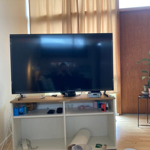 Samsung The Sero tv i sort. Skærmen kan roteres mellem lodret og vandret visning og er monteret på en integreret fod. Egnet til almindelig tv-brug samt visning af indhold i både stående og liggende format.