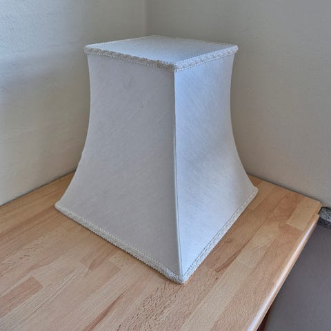 Fin lampeskærm - tydelige brugsspor, flot gylden. Ca 21 høj, 13 i toppen og 29 i bunden
