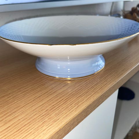 Velegnet som serveringsfad eller dekorationsfad i stel med samme dekoration eller lignende blå/hvide porcelænsdele.