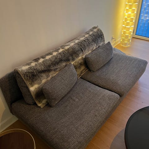 IKEA sofa i mørkegrå farve. Sofaen har brede armlæn, løs sæde- og ryghynde samt flere løse puder. Ben i lyst træ. Designet af Anders Pehrson. Velegnet som sofa i stue eller opholdsrum. Skriv på 23111191 ved interesse. Nypris 12.000kr