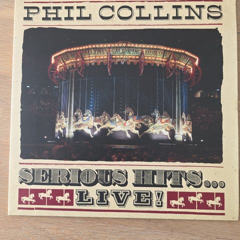 Phil Collins Serious Hits… Live! lp. Livealbum udgivelse med Phil Collins, her på vinyl lp. Coveret viser koncertmotiv, og indersleeves indeholder fotos og information fra turnéen. Velegnet til samlere af Phil Collins og liveindspilninger på vinyl.