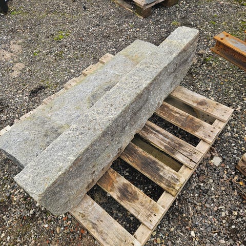 Natursten granit stenblok i grå og rødlig Rektangulær blok med rå, tilhugget overflade på siderne