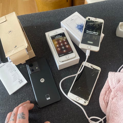Old iPhone SE. It has a screen crack (it does not affect functionality). Battery lasts very short time. The phone has not been used in many years, hence the very low price. I believe it needs a new battery.