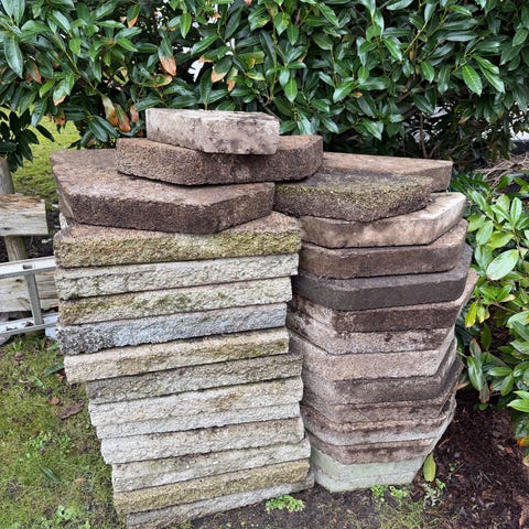 Brudplantesten - Knækfliser til støttemur/havebed