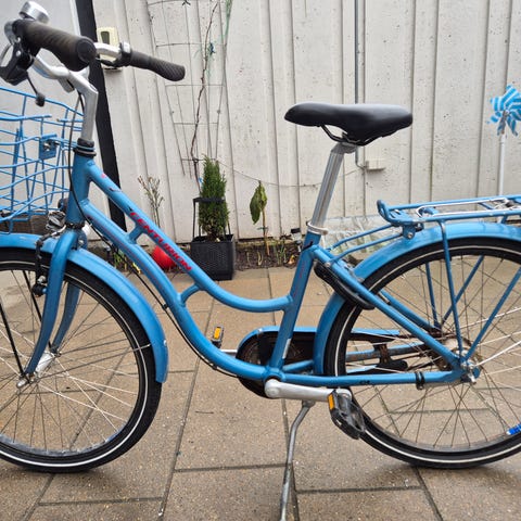 Avenue børnecykel med 24" hjul. Cyklen er i en pink farve med lysere detaljer og har lige styr. Udstyret med saddel i sort og støtteben. Foran er monteret en cykelkurv. Velegnet som cykel til større børn, der er vokset ud af de mindre hjulstørrelser.