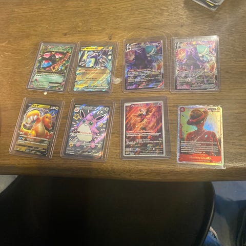 Jeg sælger et dragon Ball kort det er blevet brugt så det har en lille ridse i siden men den er stadig i god stand jeg samler nemlig ikke på det længere så håber der er andre der gør og som vil blive glad for den jeg sælger gerne min mappe med med kort i jeg sælger gerne min mappe med som har et par sider kort i☺️😃😀