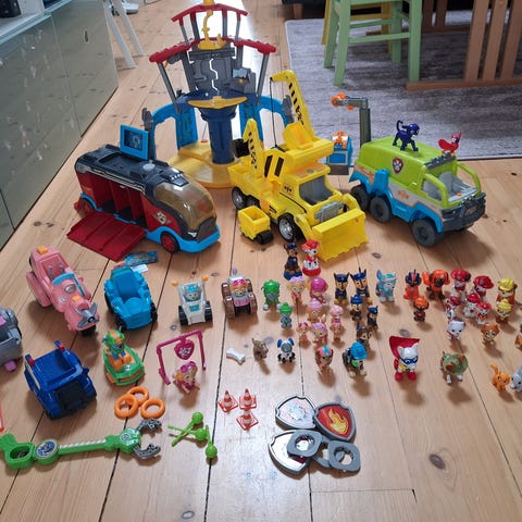 Vi har samlet Paw patrol figurer, lastbil, biler, fly. Sælges samlet.