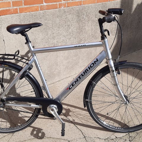 Centurion herrecykel i størrelse M med 28" hjul. Cyklen har klassisk herrestel og er udført i sort farve. Udstyret omfatter fastmonteret bagagebærer, støtteben, skærme og kædeskærm. Styret er lige med håndtag i komforttype, og sadlen er polstret for øget komfort. Velegnet som hverdagscykel til pendling og bykørsel for mænd, der passer en medium stelstørrelse og 28" hjul.
