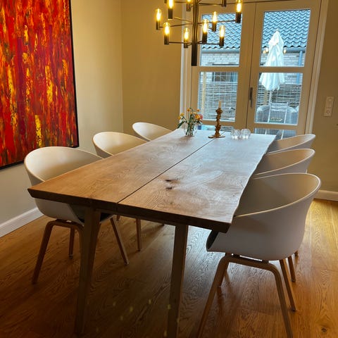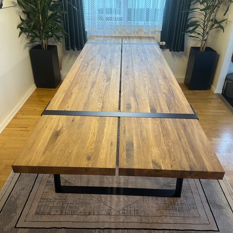 Flot og solidt spisebord i smoked eg med stålben sælges.