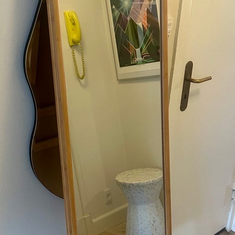 Spejl og hjørnehylde i bambus fra ikea.
