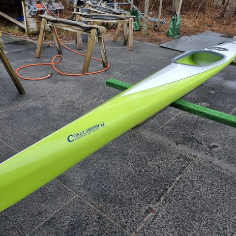 Evasion 15.5 kajak i blå farve. Kajakken er udstyret med ror monteret bagtil. Egnet til ture på sø, fjord eller kystnært farvand, hvor der ønskes en længere turkajak med rorsystem for bedre retningsstabilitet og styring.