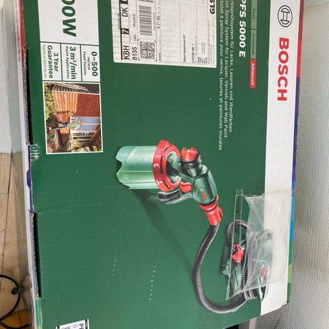 Bosch PFS 5000 E finsprøjtesystem til væg- og træmaling. Systemet er beregnet til sprøjtning af væg- og træmaling. Enheden består af en baseenhed med slange og sprøjtepistol med beholder til maling. Har aldrig været brugt.