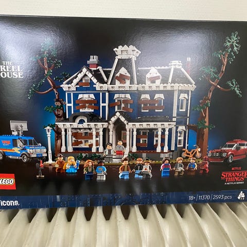 Lego Stranger Things 75810 byggesæt. Sættet er baseret på tv-serien Stranger Things og indeholder en detaljeret model af Byers-familiens hus og The Upside Down i spejlvendt version. Sættet inkluderer flere minifigurer fra serien samt tilbehør til at genskabe scener. Velegnet til Lego-samlere og fans af Stranger Things.