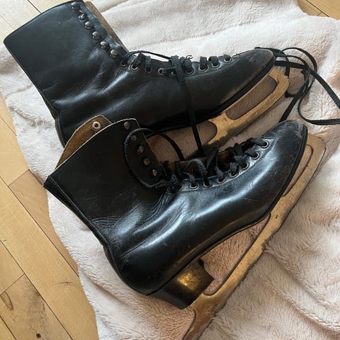 Klassiske sorte kunstskøjter fra det italienske mærke Roces med et rent retrolook og design. Høj hæl og kunstskøjteklinge i kulstofstål med tåspids. Str. 40. Brugt en gang. Nypris 700,-