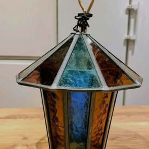 Murano vintage, blå/grøn cylinderform lampen.