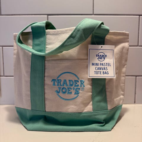 The spring 2026 Trader Joe’s mini totes are in and I grabbed a couple extra. It’s 25x25x13 when slouching and up to 27x27 when fully packed. Brand new with tags, never used, bought this weekend in California. Cotton poly blend, 2 exterior pockets with embroidered logo in lilac.