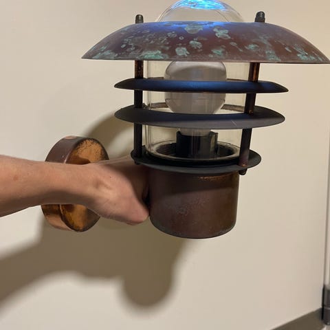 Kobber, iret, i fin stand. Mærket Form Light. Minder lidt om Louis Poulsen design.