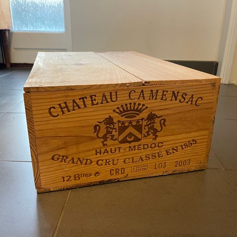 Château Haut-Bages Liberal rødvin i trækasse med 6 flasker fra årgang 2018. Kassen er af lyst træ med trykt vingårdslogo og årstal på låget. Indvendigt er der plads til seks vinflasker, som ligger i individuelle rum. Velegnet til opbevaring eller som samlet vinsæt.