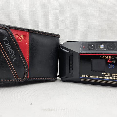 Yashica Zoomate 80 analogt kamera i sølvfarvet plastkabinet. Kompakt point‑and‑shoot model med indbygget blitz og zoomobjektiv. Kameraet har topdisplay til visning af indstillinger og tæller samt håndledsrem. Medfølgende etui i sort kunstlæder til opbevaring og beskyttelse af kameraet. Velegnet til 35 mm filmfotografering med automatisk betjening.
