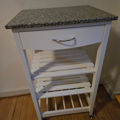 Køkkenø på hjul, der kan låses. Mærket er SoBuy.