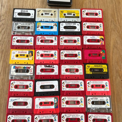 Kassettebånd og bog.