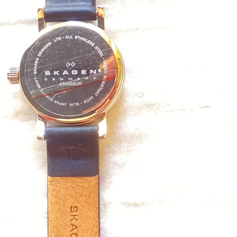 Skagen uret er i super flot stand med sort læderrem.