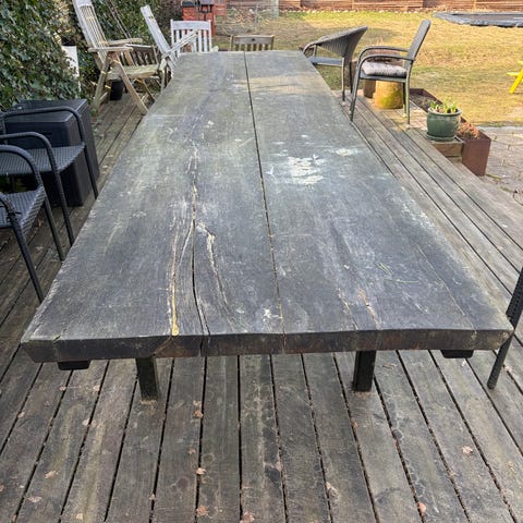 Udendørs havebord i teak og jern