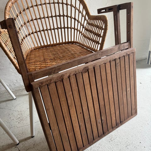 Havebord / loungebord / sidebord i sort jern / metal. Med teaktræ. Træer kan blot gives lidt olie. Så bliver det varmt i farven igen.